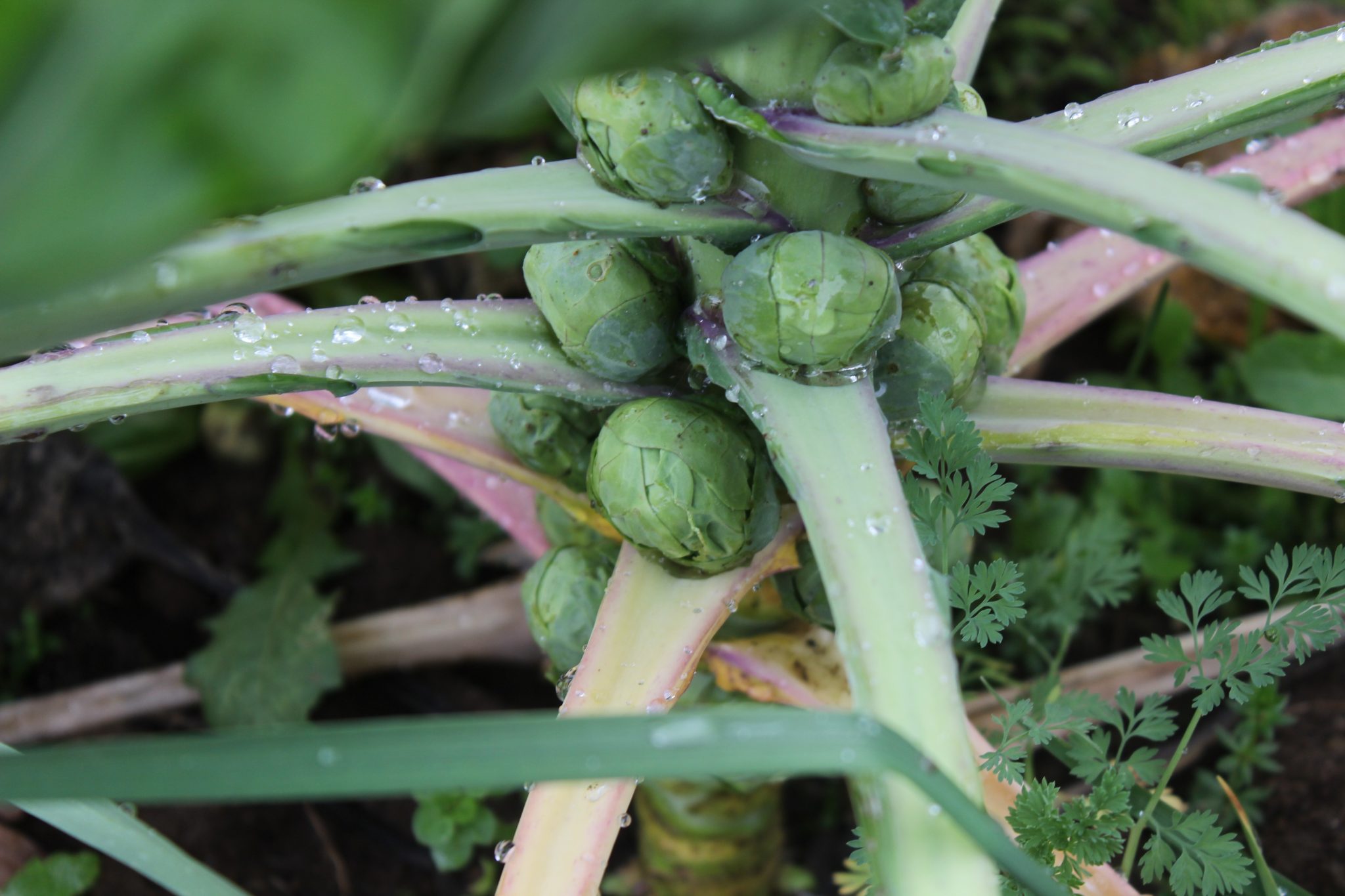 Brussels sprouts are an odd vegetable. Their growing time of four months is double that of large purple and white cabbages. Whereas other veggies in the cabbage family produce one single vegetable, the brussels sprouts plant produces many.